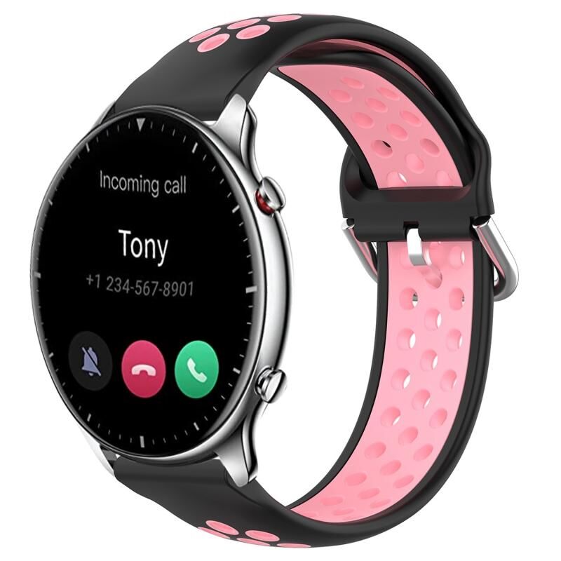For Amazfit GTR 2 22mm Perforated Breathable Sports Silicone Watch Band(Black+Pink)