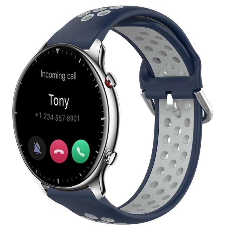 For Amazfit GTR 2 22mm Perforated Breathable Sports Silicone Watch Band(Midnight Blue + Gray)