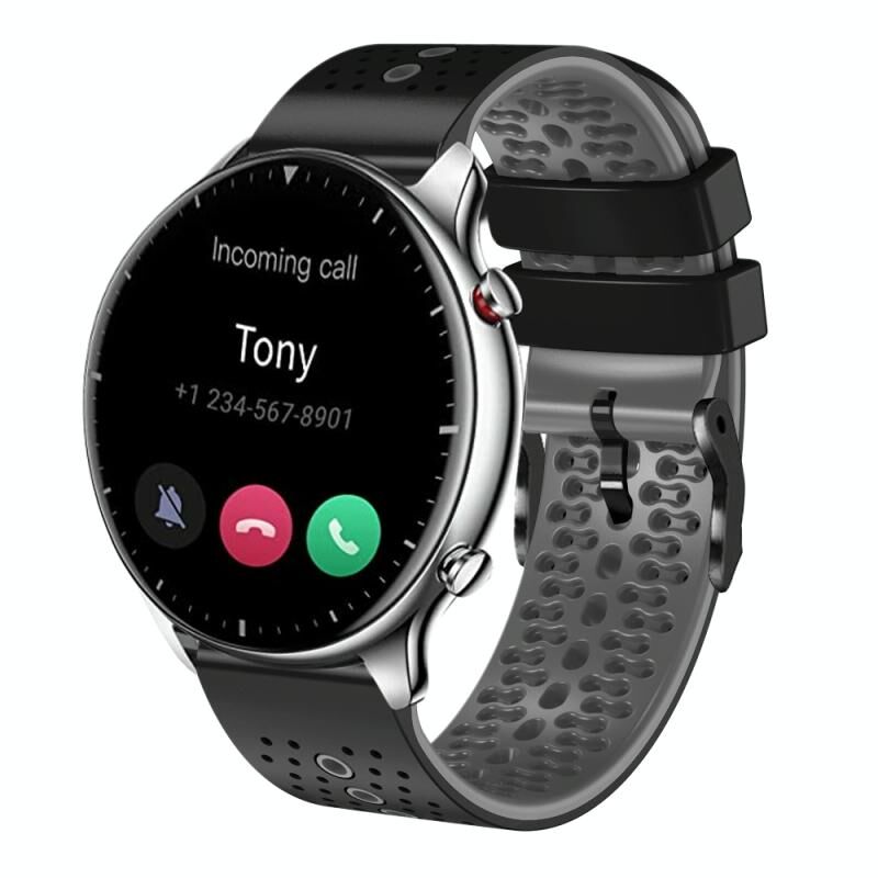 Για Amazfit GTR 2 22 χιλιοστά διάτρητη ζώνη ρολογιού σιλικόνης δύο χρωμάτων (μαύρο + γκρι)