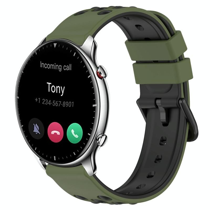 Για Amazfit GTR 2 22 χιλιοστά δύο χρωμάτων πορώδη ζώνη σιλικόνης ρολόι (πράσινο στρατού + μαύρο)