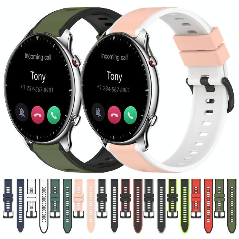 Για Amazfit GTR 2 22 χιλιοστά δύο χρωμάτων σιλικόνης ρολόι μπάντα (Olive Green + Μαύρο)