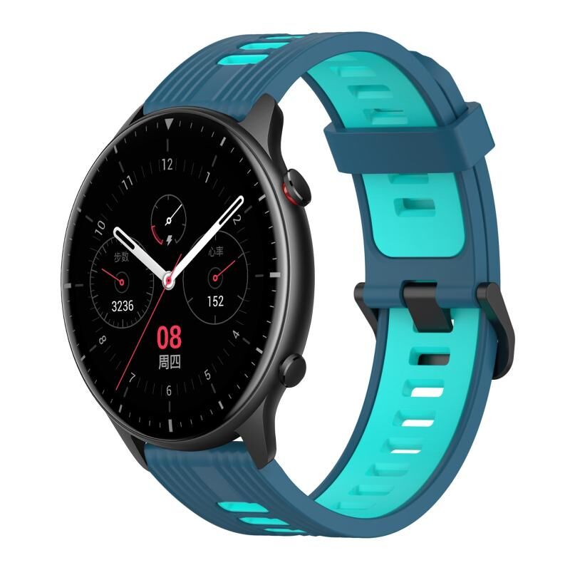 For Amazfit GTR 2 22mm Vertical Pattern Two-Color Silicone Watch Band(Blue+Water Duck)