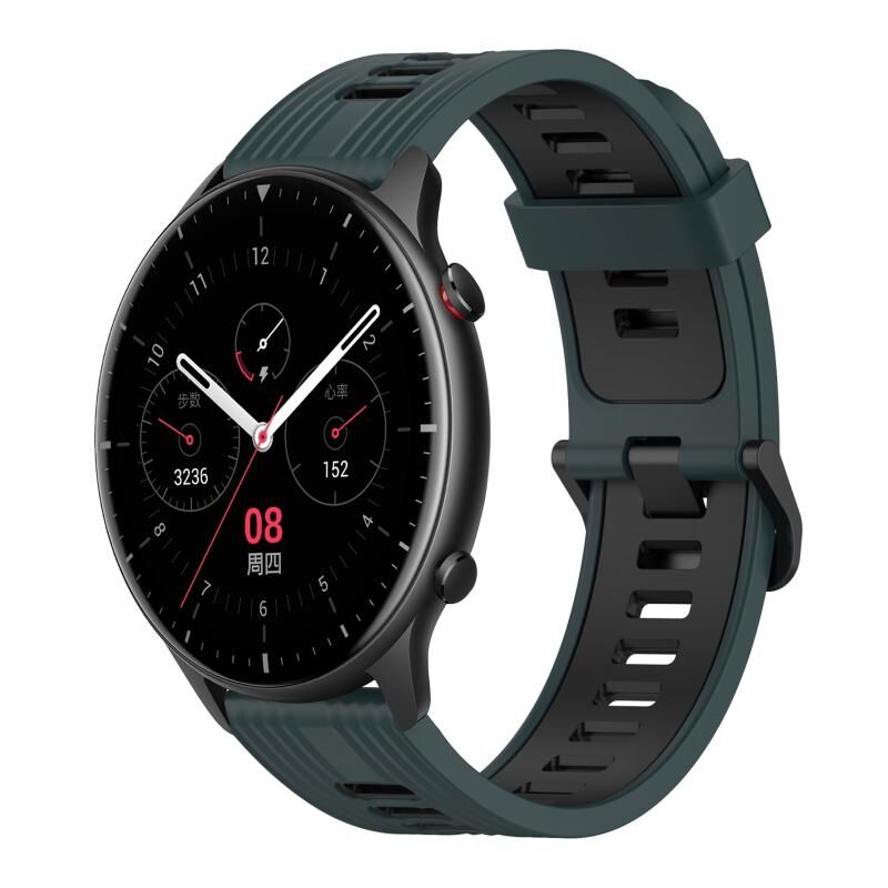 For Amazfit GTR 2 22mm Vertical Pattern Two-Color Silicone Watch Band(Olive Green + Black)