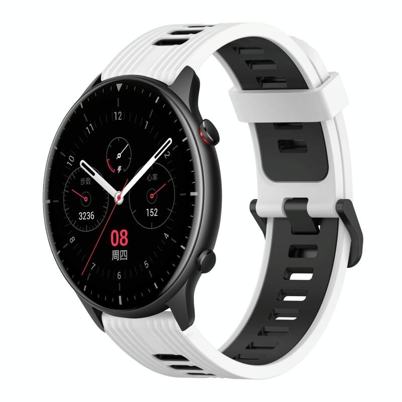 Για Amazfit GTR 2 λουρί ρολογιού σιλικόνης 22mm με κάθετο σχέδιο και διχρωμία (Λευκό+Μαύρο)
