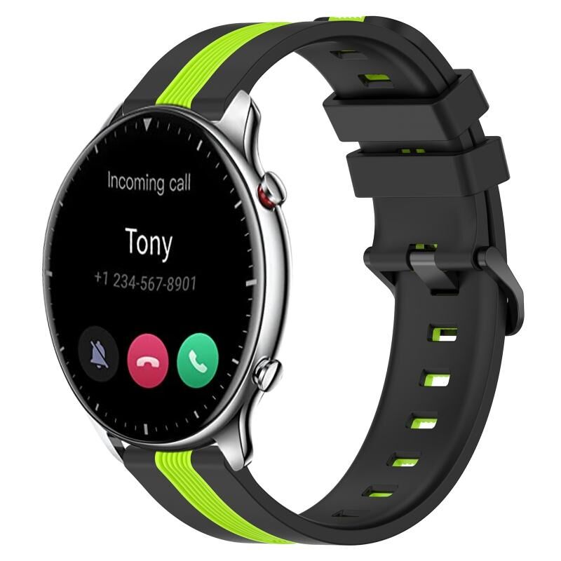 Για Amazfit GTR 2 22mm κάθετη ζώνη ρολογιού σιλικόνης δύο χρωμάτων (μαύρο + πράσινο χρώμα)