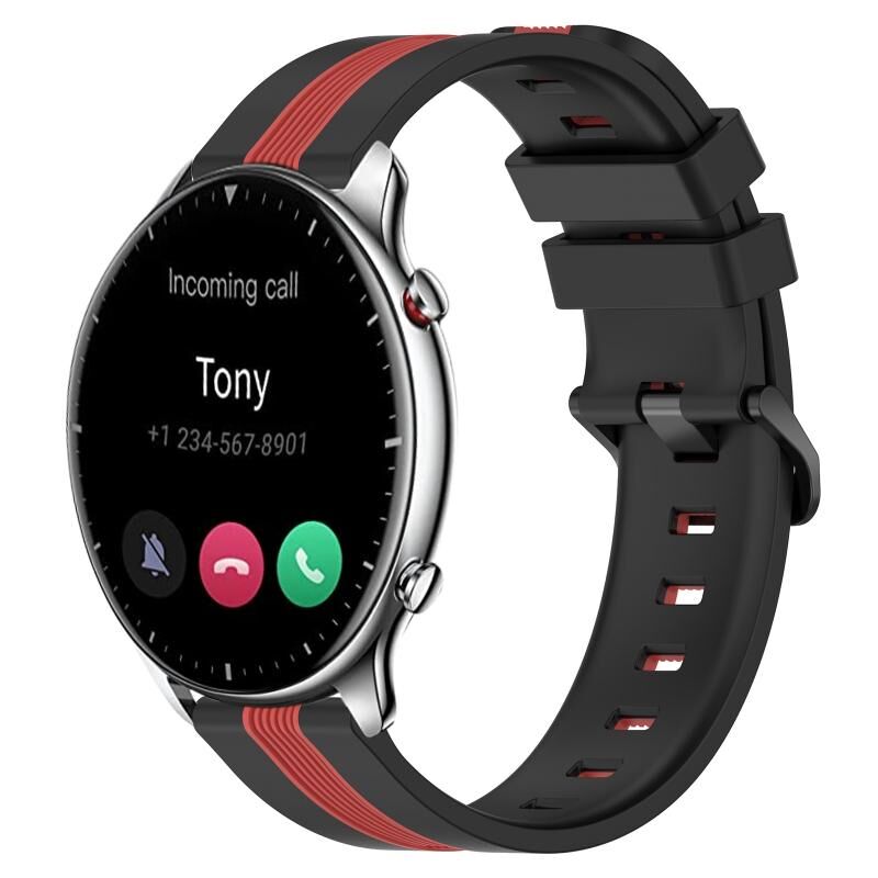 Για Amazfit GTR 2 22mm Κάθετη ζώνη ρολογιού σιλικόνης δύο χρωμάτων (μαύρο + κόκκινο)