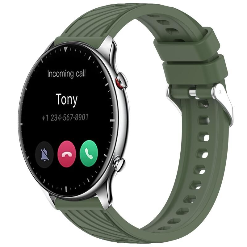 Για Amazfit GTR 2 Λουρί Σιλικόνης για Ρολόι με Υφή Ρίγας 22mm (Σκούρο Πράσινο)