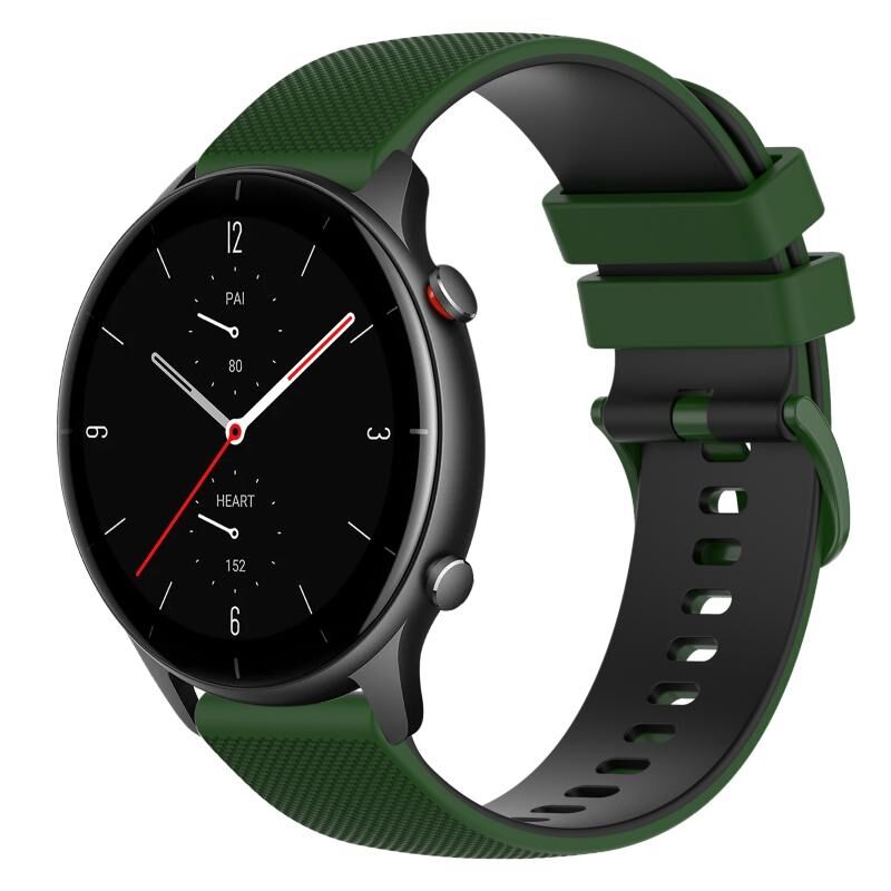 Για Amazfit GTR 2e 22 χιλιοστά Checkered δύο χρωμάτων σιλικόνης ρολόι μπάντα (Amy Green + Μαύρο)
