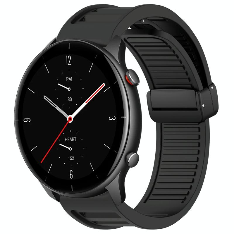 For Amazfit GTR 2e 22mm Fold Magnetic Buckle Silicone Watch Band(Black)