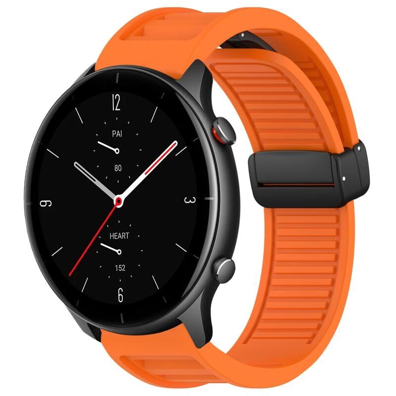 For Amazfit GTR 2e 22mm Fold Magnetic Buckle Silicone Watch Band(Orange)