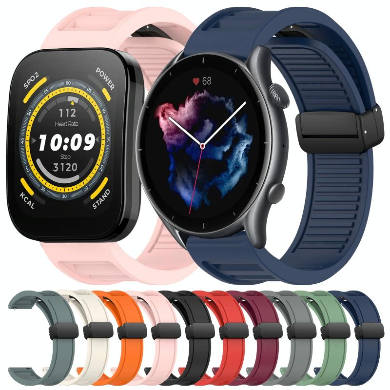 For Amazfit GTR 2e 22mm Fold Magnetic Buckle Silicone Watch Band(Rock Cyan)