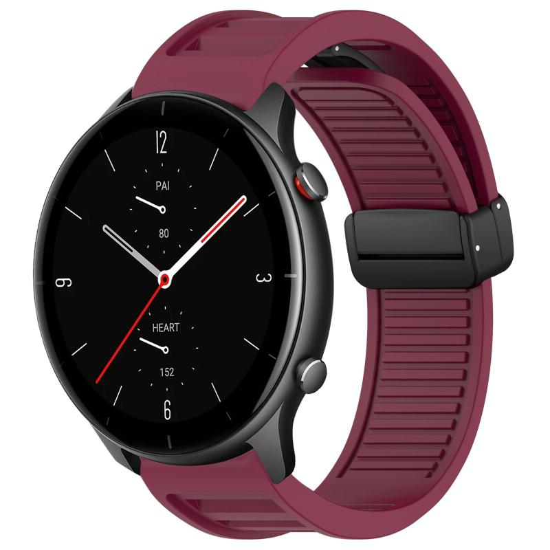 For Amazfit GTR 2e 22mm Fold Magnetic Buckle Silicone Watch Band(Wine Red)