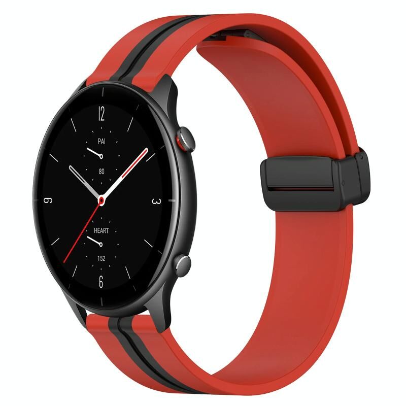 Για Amazfit GTR 2e 22mm Πτυσσόμενο μαγνητικό κούμπωμα ζώνη ρολογιού σιλικόνης (κόκκινο + μαύρο)