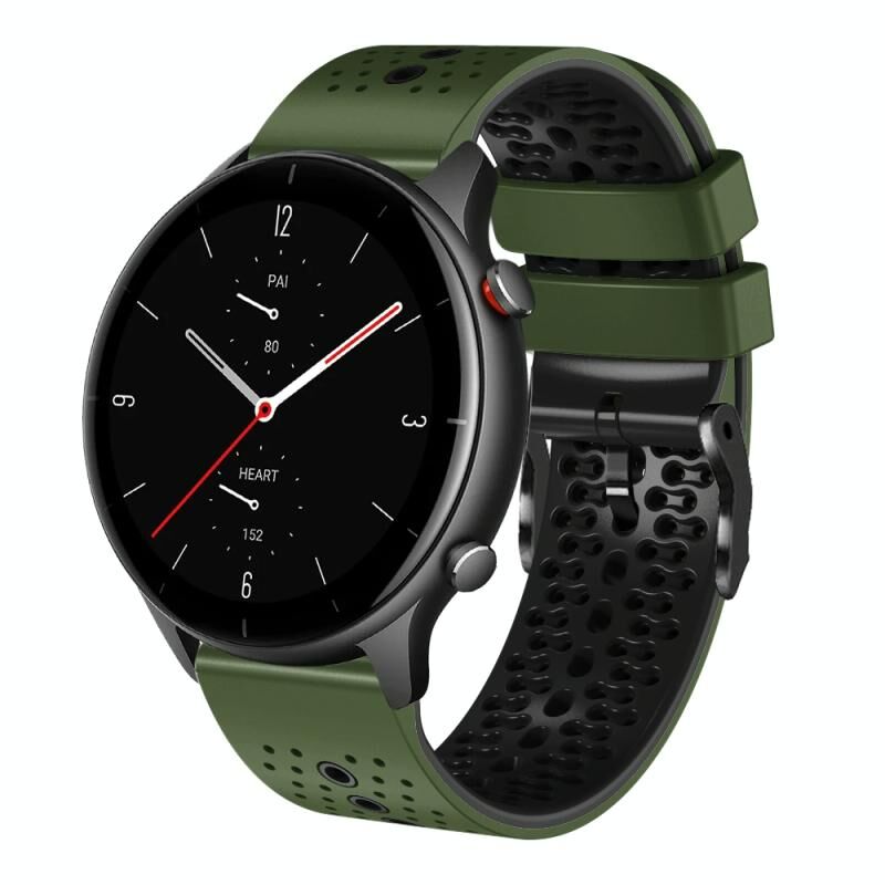 Για Amazfit GTR 2e 22 χιλιοστά διάτρητη ζώνη ρολογιού σιλικόνης δύο χρωμάτων (πράσινο στρατού + μαύρο)