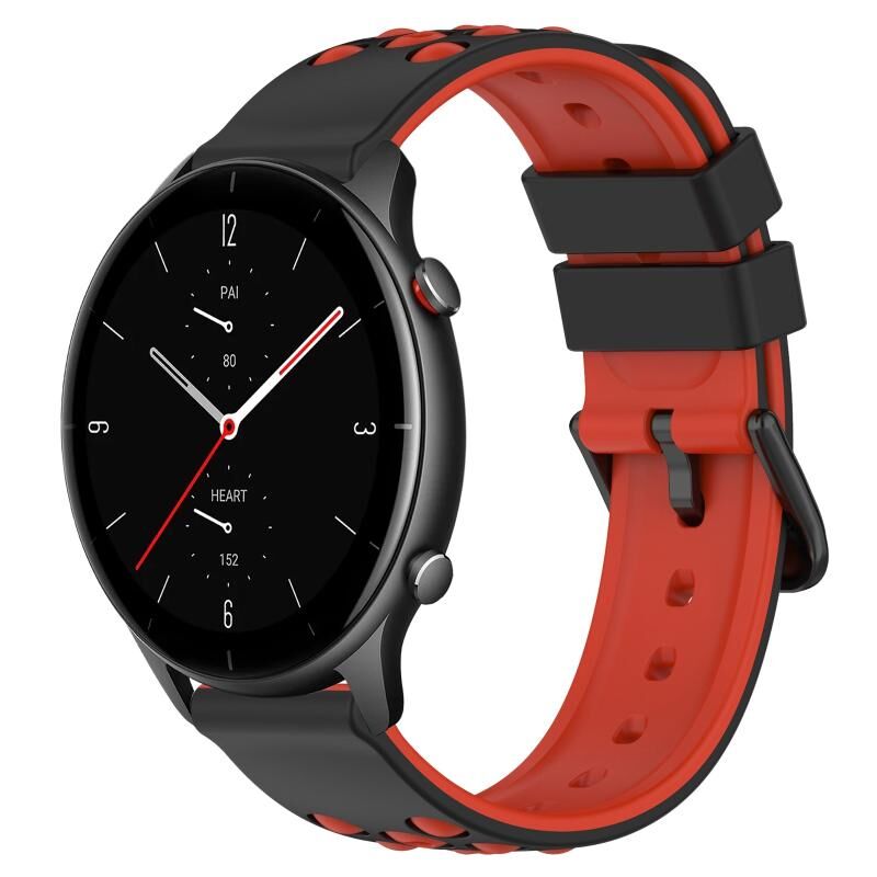 Για Amazfit GTR 2e 22 χιλιοστά δύο χρωμάτων πορώδες λουράκι σιλικόνης ρολόι (μαύρο + κόκκινο)