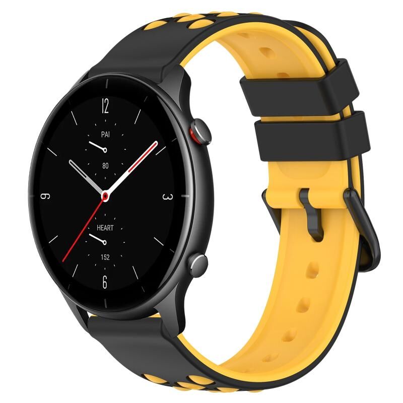 Για Amazfit GTR 2e 22 χιλιοστά δύο χρωμάτων πορώδες λουράκι σιλικόνης ρολόι (μαύρο + κίτρινο)