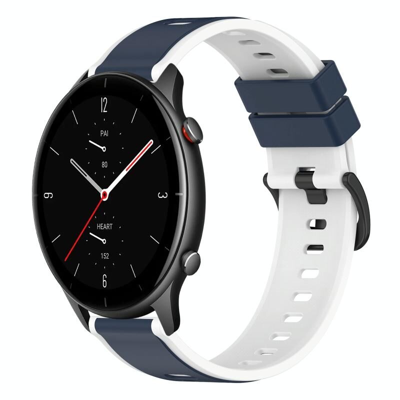 Για Amazfit GTR 2e 22 χιλιοστά δύο χρωμάτων σιλικόνης ρολόι μπάντα (Midnight Blue + Λευκό)
