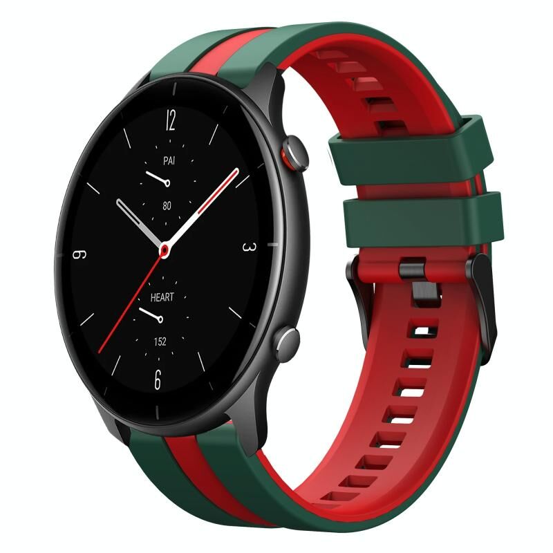 Για Amazfit GTR 2e 22 χιλιοστά δύο χρωμάτων αθλητική ζώνη σιλικόνης ρολόι (πράσινο + κόκκινο)