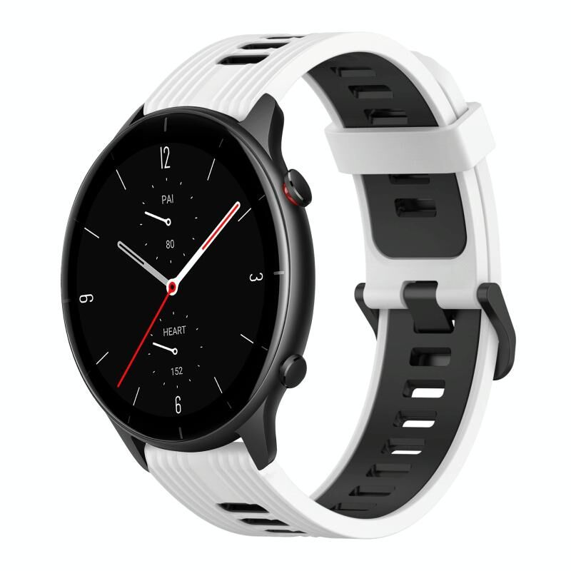 Για Amazfit GTR 2e 22mm Λουρί Σιλικόνης για Ρολόι με Διχρωμία και Κάθετο Σχέδιο (Λευκό+Μαύρο)