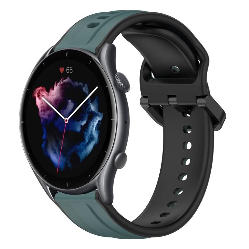 Για Amazfit GTR 3 22 χιλιοστά κυρτό βρόχο δύο χρωμάτων σιλικόνης ρολόι μπάντα (Olive Green + Μαύρο)