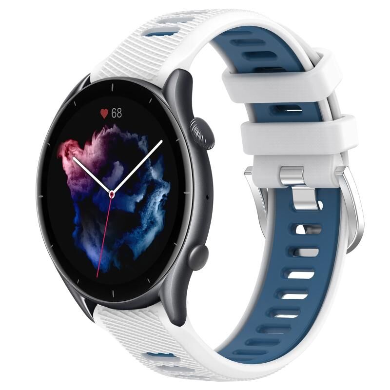 Για Amazfit GTR 3 λουρί ρολογιού σιλικόνης με ατσάλινη πόρπη, 22mm, διχρωμίας με ανάγλυφη υφή (Λευκό+Μπλε)