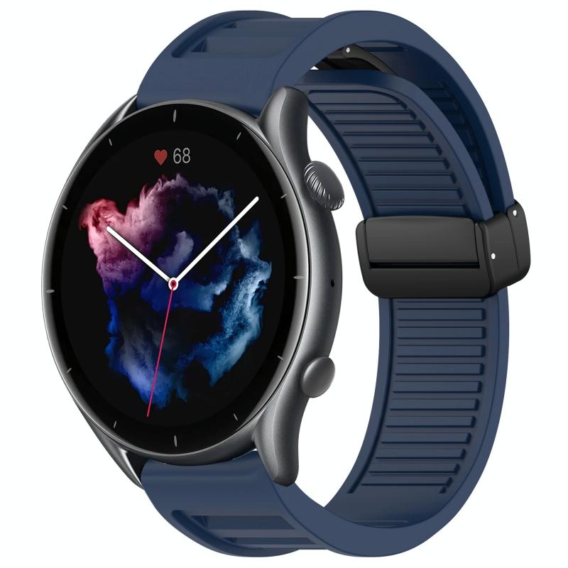 For Amazfit GTR 3 22mm Fold Magnetic Buckle Silicone Watch Band(Midnight Blue)