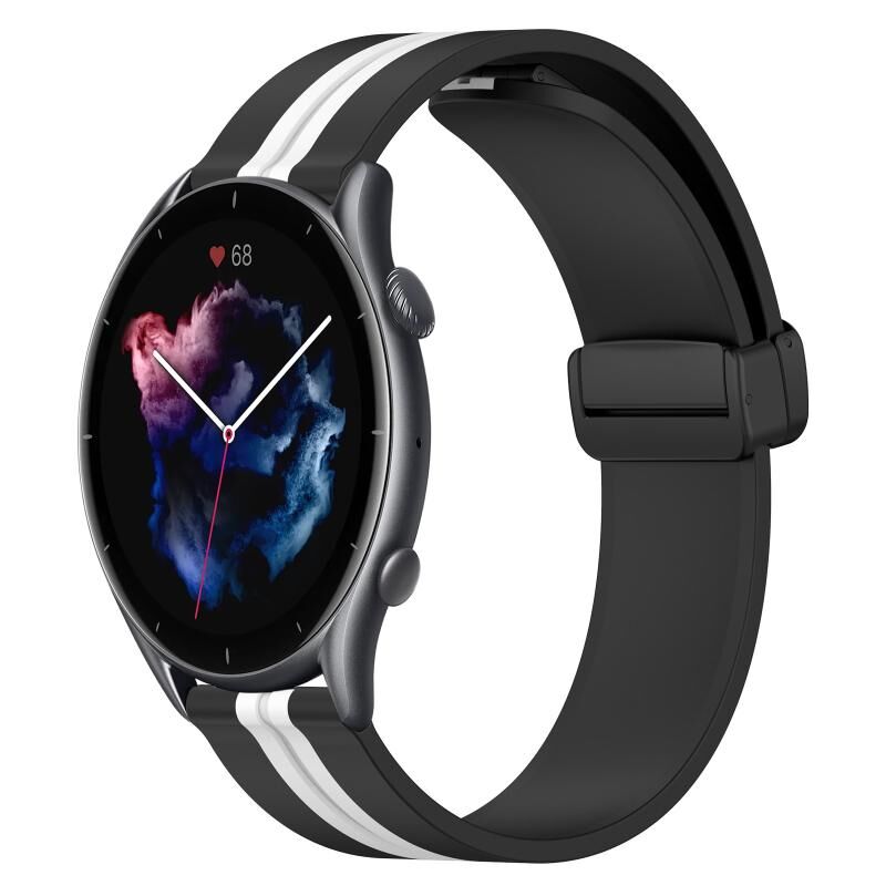 Για Amazfit GTR 3 22mm Πτυσσόμενο μαγνητικό κούμπωμα ζώνη ρολογιού σιλικόνης (Μαύρο + Λευκό)