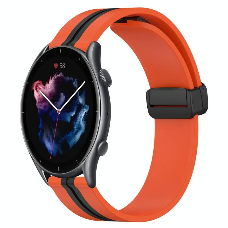 Για Amazfit GTR 3 22mm Πτυσσόμενο μαγνητικό κούμπωμα ζώνη ρολογιού σιλικόνης (πορτοκαλί+μαύρο)