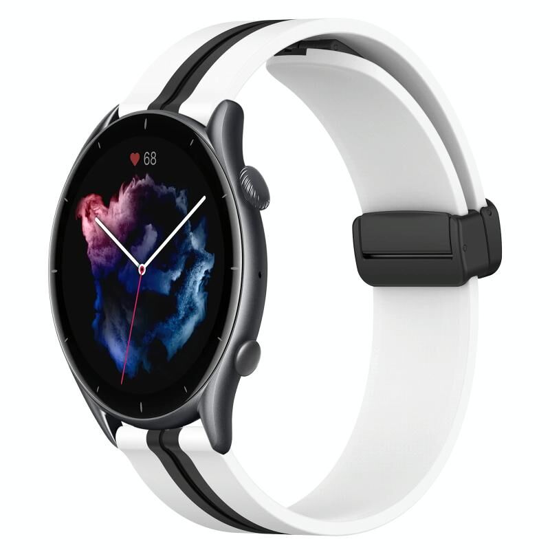 Για Amazfit GTR 3 22mm Πτυσσόμενο μαγνητικό κούμπωμα ζώνη ρολογιού σιλικόνης (Λευκό + Μαύρο)