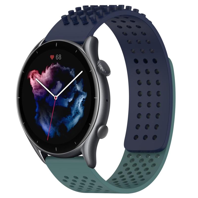 For Amazfit GTR 3 22mm Holes Breathable 3D Dots Silicone Watch Band(Midnight Blue+ Olive Green)