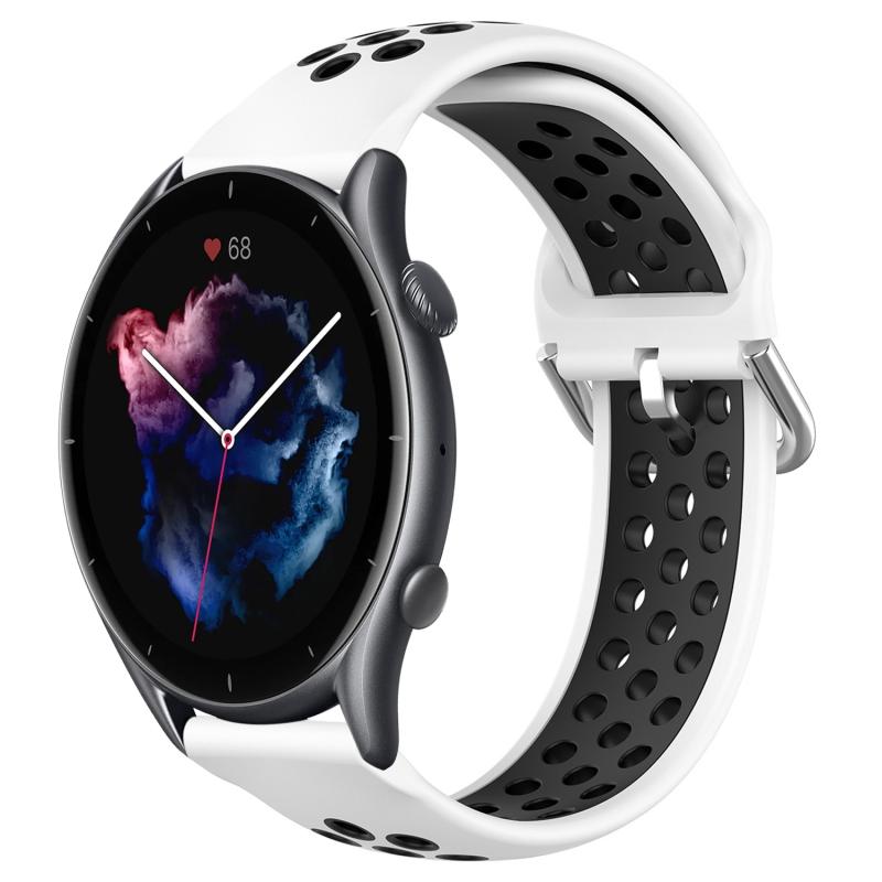 For Amazfit GTR 3 22mm Perforated Breathable Sports Silicone Watch Band(White+Black)