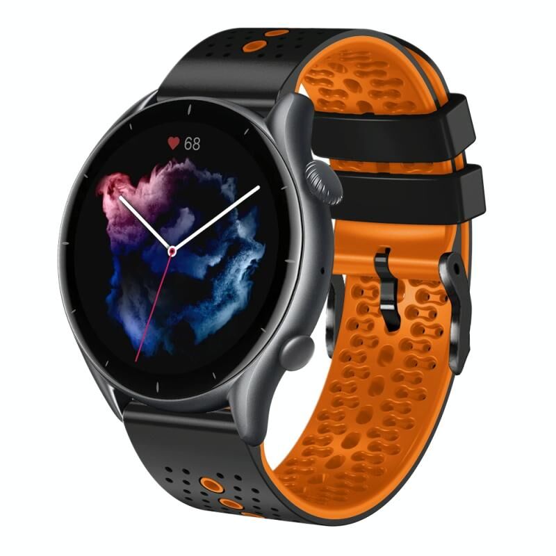 Για Amazfit GTR 3 22 χιλιοστά διάτρητη ζώνη ρολογιού σιλικόνης δύο χρωμάτων (μαύρο + πορτοκαλί)