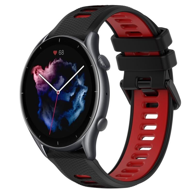 Για Amazfit GTR 3 22MM Αθλητικό ρολόι σιλικόνης δύο χρωμάτων (μαύρο + κόκκινο)
