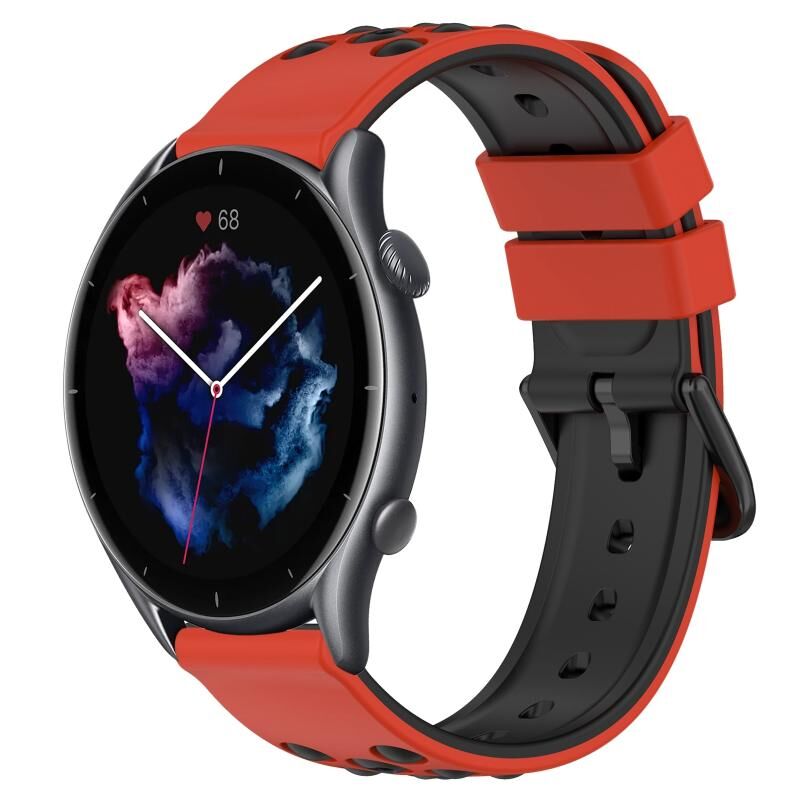 Για Amazfit GTR 3 22 χιλιοστά δύο χρωμάτων πορώδες λουράκι σιλικόνης ρολόι (κόκκινο+μαύρο)