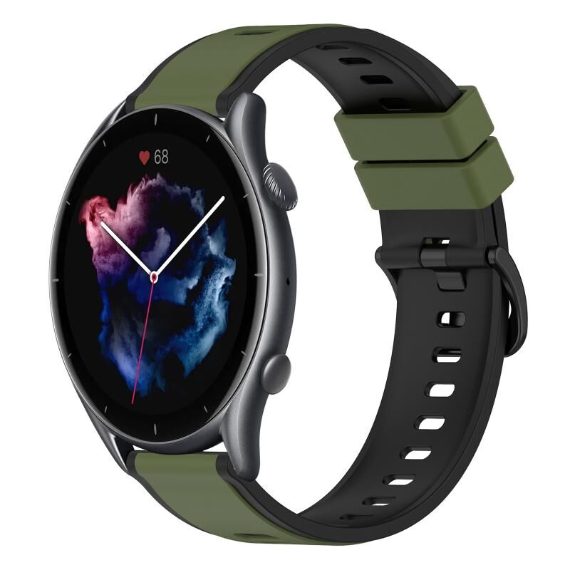 Για Amazfit GTR 3 22 χιλιοστά δύο χρωμάτων ζώνη σιλικόνης ρολόι (πράσινο στρατού + μαύρο)