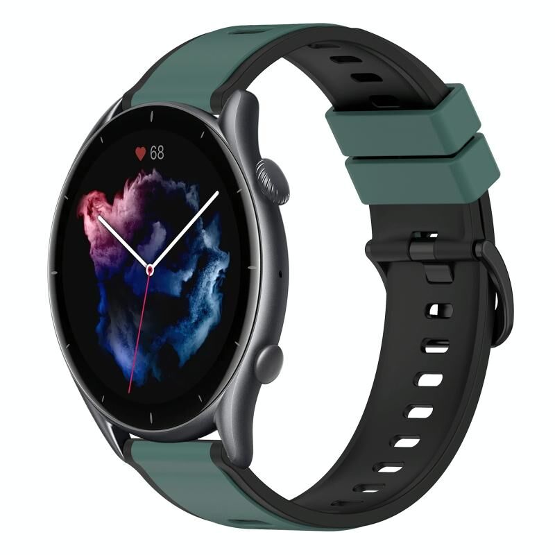 Για Amazfit GTR 3 22 χιλιοστά δύο χρωμάτων σιλικόνης ρολόι μπάντα (Olive Green + Μαύρο)