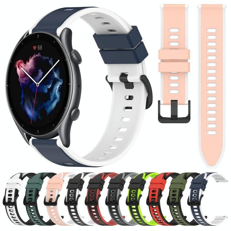 Για Amazfit GTR 3 22 χιλιοστά δύο χρωμάτων ζώνη σιλικόνης ρολόι (ροζ + λευκό)