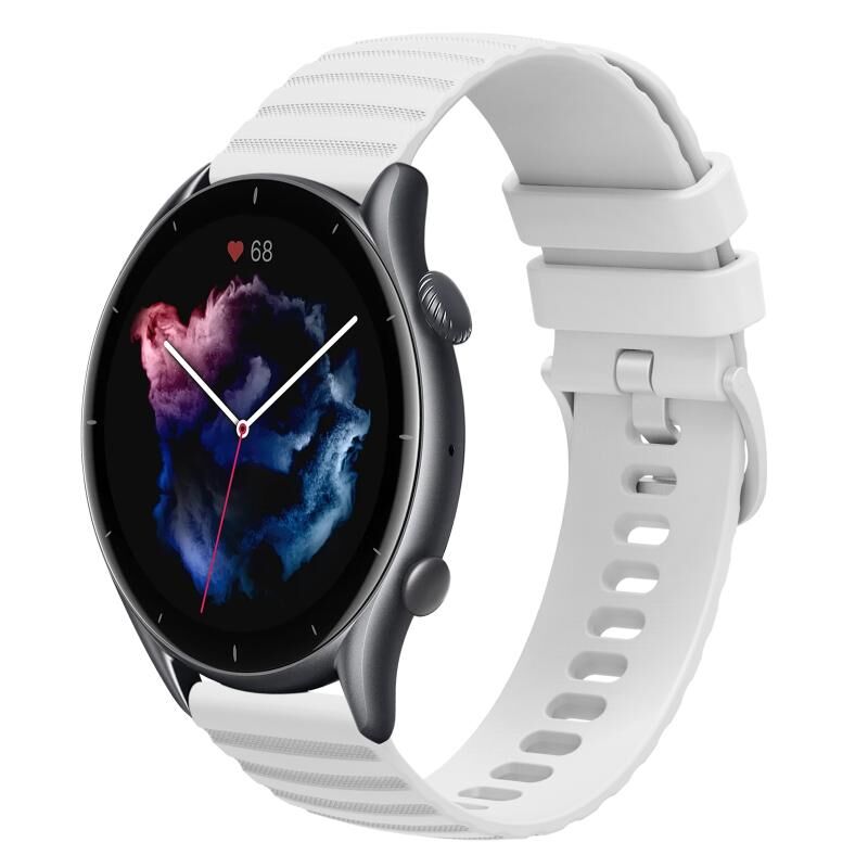 Για Amazfit GTR 3 22 χιλιοστά κυματιστή διακεκομμένη ζώνη ρολογιού σιλικόνης στερεού χρώματος (λευκό)