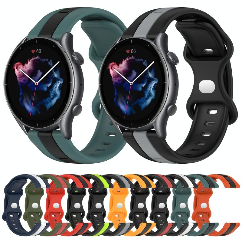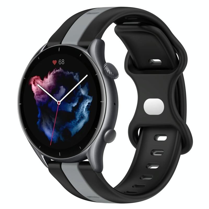 For Amazfit GTR 3 Pro 22mm Butterfly Buckle Two-Color Silicone Watch Band(Black+Grey)