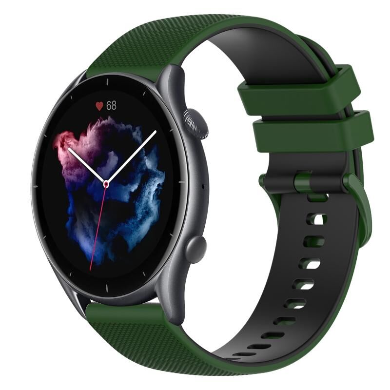 Για Amazfit GTR 3 Pro 22 χιλιοστά Checkered δύο χρωμάτων σιλικόνης ρολόι μπάντα (Amy Green + Μαύρο)