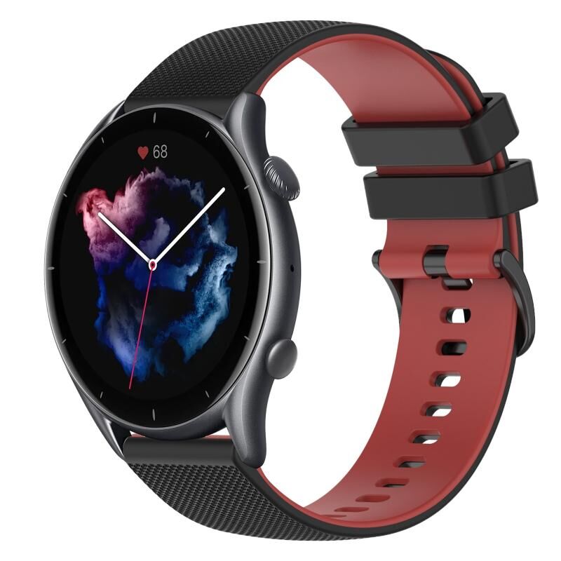 Για Amazfit GTR 3 Pro 22 χιλιοστά Checkered δύο χρωμάτων ζώνη σιλικόνης ρολόι (μαύρο + κόκκινο)