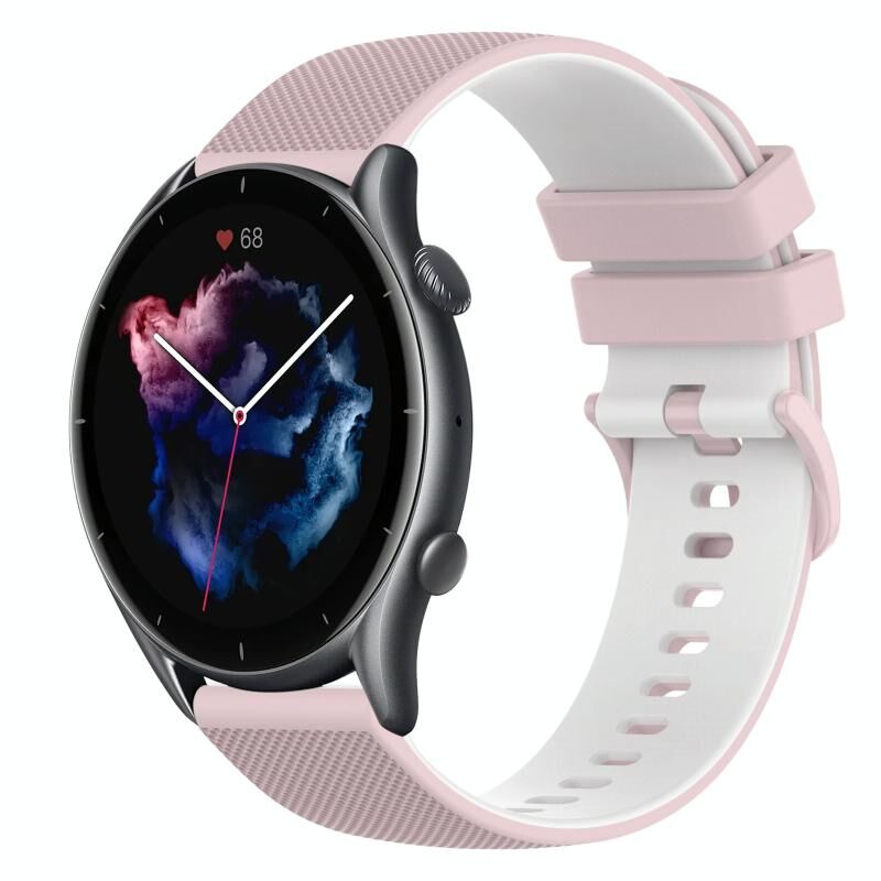 Για Amazfit GTR 3 Pro 22 χιλιοστά Checkered δύο χρωμάτων σιλικόνης ρολόι μπάντα (ροζ + λευκό)