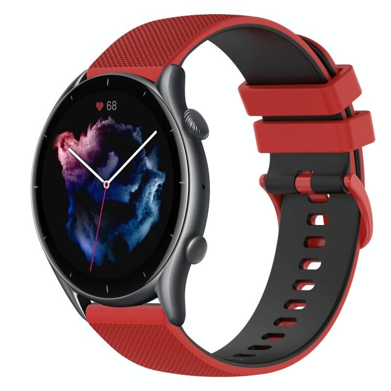 Για Amazfit GTR 3 Pro 22 χιλιοστά Checkered δύο χρωμάτων σιλικόνης ρολόι μπάντα (κόκκινο + μαύρο)