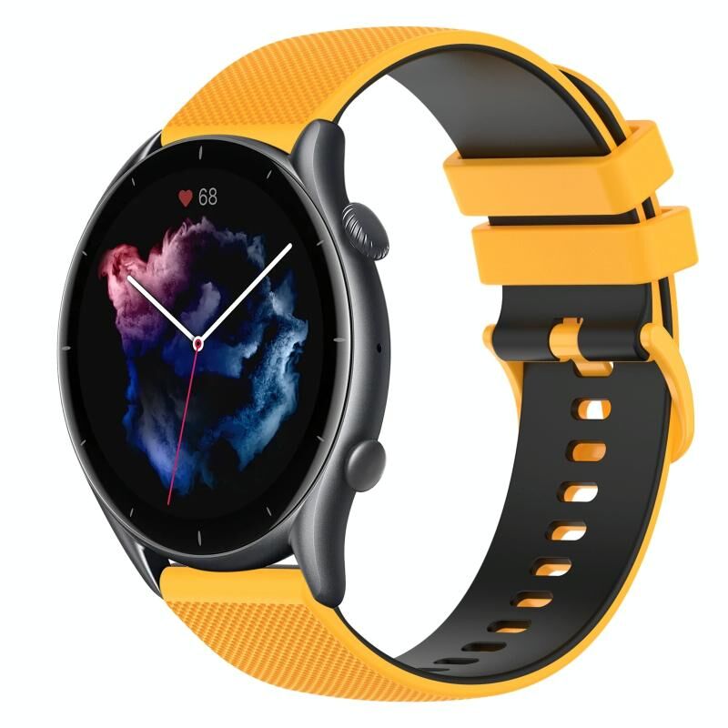 Για Amazfit GTR 3 Pro 22 χιλιοστά Checkered δύο χρωμάτων σιλικόνης ρολόι μπάντα (κίτρινο + μαύρο)