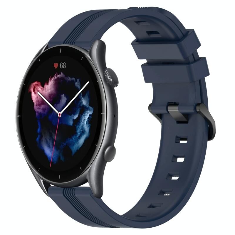 For Amazfit GTR 3 Pro 22mm Concave Striped Slicone Watch Band(Navy Blue)