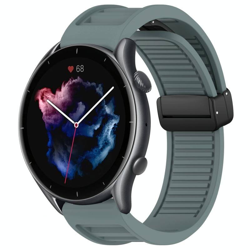 For Amazfit GTR 3 Pro 22mm Fold Magnetic Buckle Silicone Watch Band(Rock Cyan)