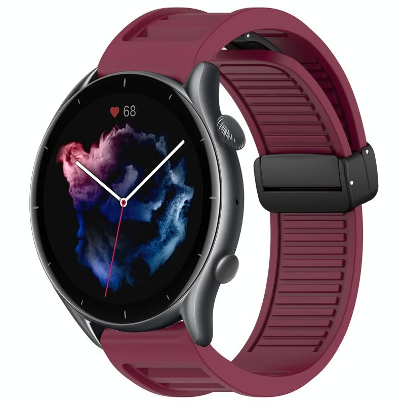 For Amazfit GTR 3 Pro 22mm Fold Magnetic Buckle Silicone Watch Band(Wine Red)