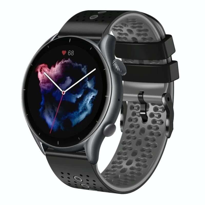 Για Amazfit GTR 3 Pro 22 χιλιοστά διάτρητη ζώνη ρολογιού σιλικόνης δύο χρωμάτων (μαύρο + γκρι)