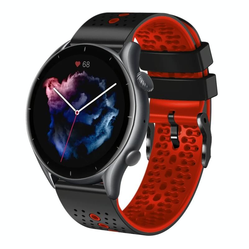 Για Amazfit GTR 3 Pro 22 χιλιοστά διάτρητη ζώνη ρολογιού σιλικόνης δύο χρωμάτων (μαύρο + κόκκινο)