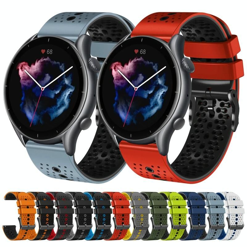 Για Amazfit GTR 3 Pro 22 χιλιοστά διάτρητη ζώνη ρολογιού σιλικόνης δύο χρωμάτων (λευκό + μπλε)